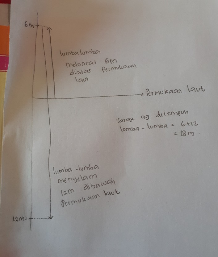 Tentukan selisih ketinggian meloncat dan kedalaman menyelam ikan lumba tersebut