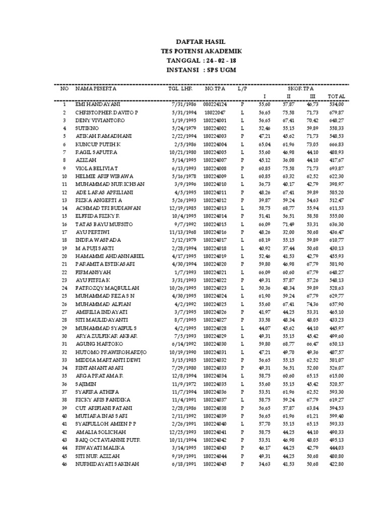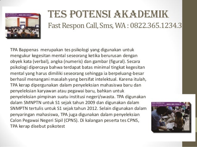 Itb contohnya, menjadikan standar nilai 475 untuk s2 dan nilai 55o untuk s3. Tes verbal berfungsi untuk mengukur kemampuan seseorang di bidang kata dan bahasa. Kampus utama itb saat ini merupakan lokasi dari sekolah tinggi teknik pertama di indonesia. Aku kemarin tes tpa langsung di bappenas yang berlokasi di jl. Di situ ada pilihan apakah kita bersedia merekomendasikan tpa bappenas ke instansi kita, dengan emosi saya jawab tidak hahahaha.